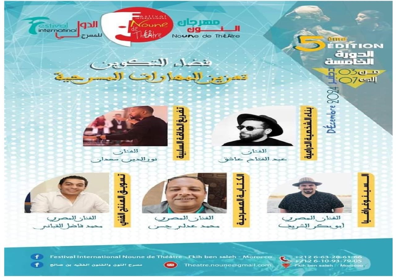 خصصت فعاليات الدورة الخامسة من مهرجان النون الدولي للمسرح، الذي تستضيفه مدينة الفقيه بن صالح من 3 الى 7 دجنبر 2024، دورة الفنان الراحل مصطفى الداسوكين، برنامجا تكوينيا مسرحيا، من خلال عدد من الورشات الاحترافية يغطي عدة مؤسسات تعليمية بمدينتي الفقيه بن صالح وسوق السبت.