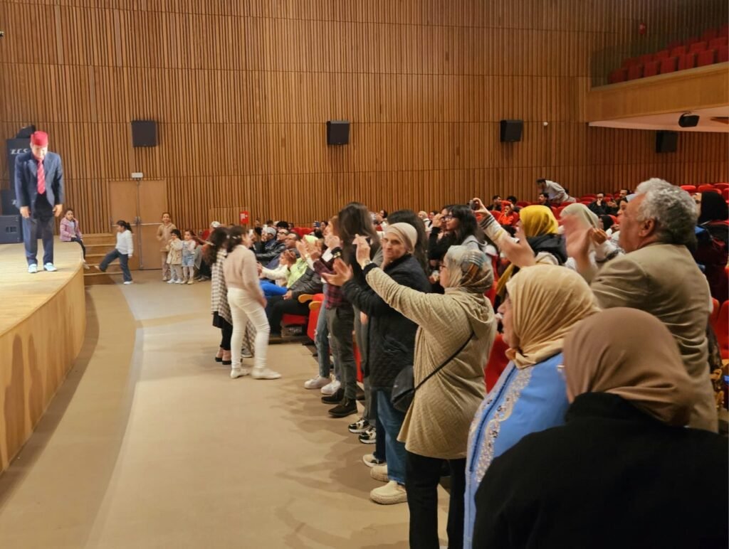 عند نهاية العرض، الذي كان مميزا، ومبهرا، تحولت قاعة العروض الى عرس كبير، اختلطت فيها زغاريد النسوة الحاضرات بهتافات الاطفال والشباب والرجال، وهم يرددون الصلاة على رسول الله على الطريقة المغربية المعروفة، لقاء اختتم بمعانقة الجمهور لكل الممثلين واخذ الصور التذكارية معهم.